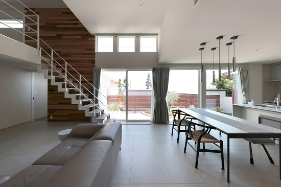 こちらの事例は大判タイルを使っているので、とてもゆったりとした上質な空間をつくり上げています。