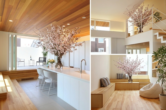 期間中は、モデルハウスの室内に桜の枝を活け、春らしい華やかな空間にしつらえます。