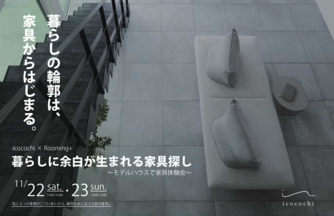 次回は 「暮らしに余白が生まれる家具探し 〜モデルハウスで家具体験会〜」 を 11月22日(土)・23日(日) にモデルハウスで開催いたします。