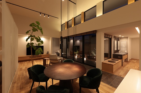 住まわれる方のライフスタイルによって、リビング・ダイニング・フリースペースの配置は変わっていくもの。