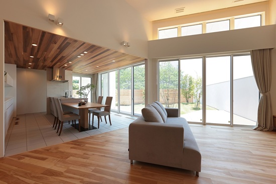 大開口の先は目隠しの壁が建っているので、外からの視線を受けることがほとんどなく、開放的な暮らしを満喫できます。