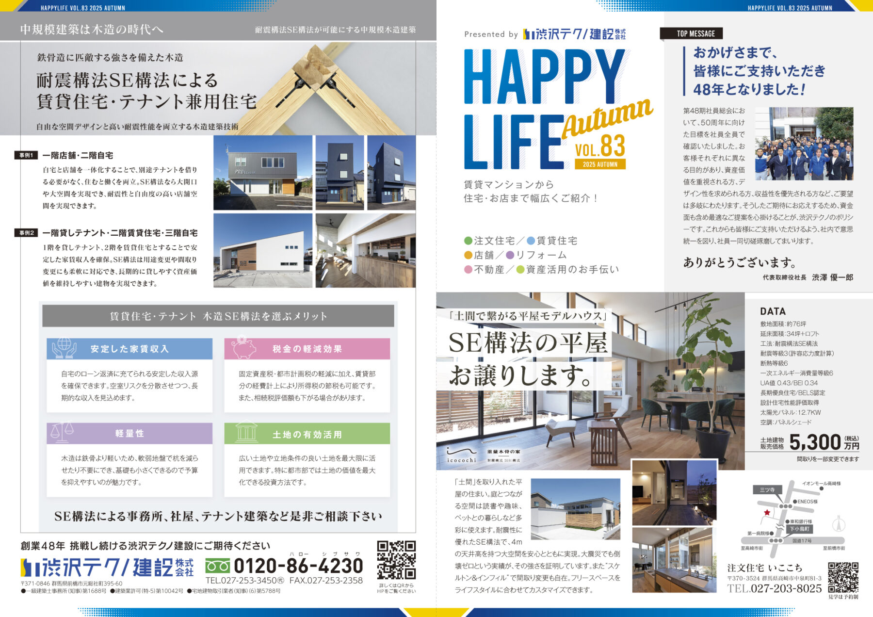 その他、裏面では「耐震構法SE構法による賃貸住宅・テナント兼用住宅」を特集しています。